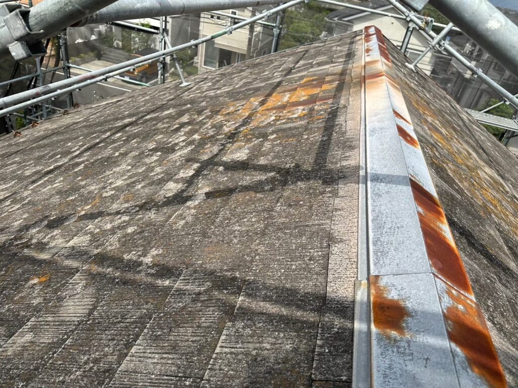 新築時から一度も屋根のメンテナンスをしていなかったお客様から外壁改修をするにあたって足場を建てるので今まで放置してあった屋根も綺麗にしたいとの事で屋根のカバー工事をお勧めし工事の運びとなりました。