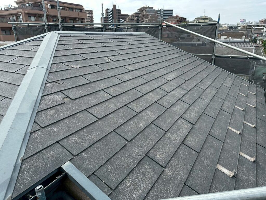 ご依頼は劣化した平形スレート屋根のカバー工事です。