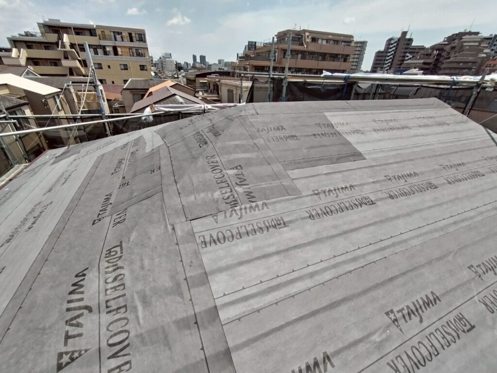 今回の屋根カバー工事に使用した下葺材は田島ルーフィングのタディスセルフカバーという商品です。