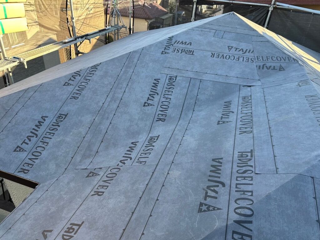 屋根の下地も新しくなり屋根がしっかりとしました。次は屋根前面に防水紙を貼っていきます。