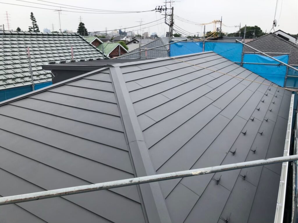 屋根材の継ぎ目や外壁との取り合い部分は雨漏りの入口になりやすい場所です。ひび割れや剥がれがある場合は補修が必要です。